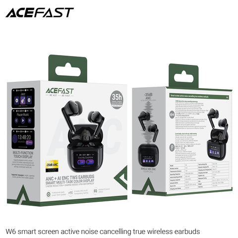 Acefast W6 Smart Screen Active Noise Cancelling True Wireless Earbuds - Black
