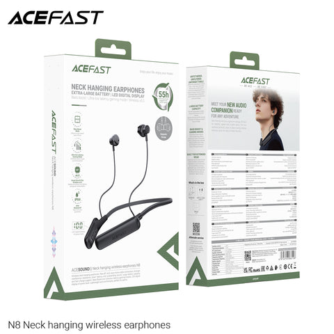 Experience the perfect blend of performance, style, and endurance with the Acefast N8. Designed for those who demand more from their audio, these neck-hanging earphones feature the latest Bluetooth v6.0 technology for a rock-solid connection and an incredible 55-hour battery life. Whether you're power-gaming in Ultra-Low Latency Mode, boosting the bass for a workout, or taking clear HD calls, the N8 is built to keep up with your lifestyle.