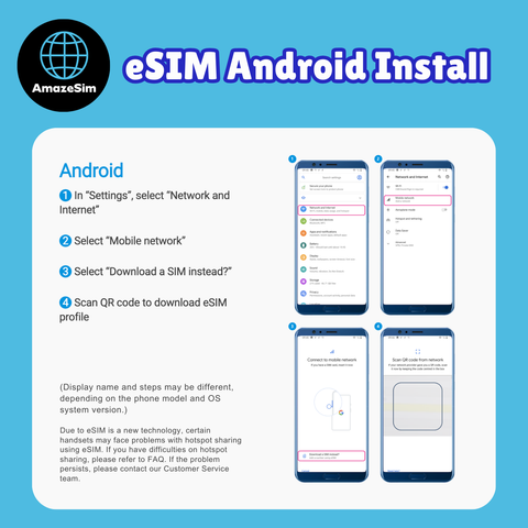 Due to different handset version, if you face hotspot sharing issue with your eSIM, please follow below steps: