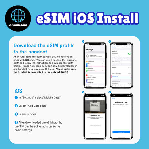 After purchasing eSIM service, you will receive an email with QR code. Please use handset which supports eSIM and follow the instruction to download the eSIM profile. Please note each eSIM can only download in one handset for maximum 10 times. Please make sure the handset is connected to network (WiFi or Mobile Network).