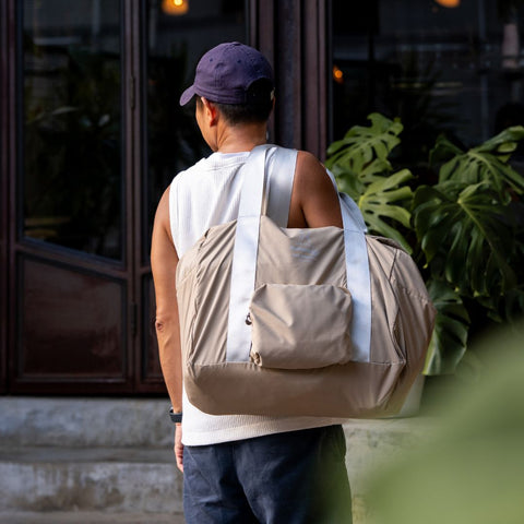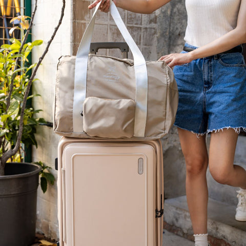 Shopping while fretting over luggage space during your travels can be quite a hassle. MONOCOZZI’s Bon Voyage Foldable Duffel bag is elegantly crafted from high-quality, lightweight, water-repellent material. We've thoughtfully included a double zipper for accommodating a padlock, making it a breeze to check in any additional purchases. Moreover, the ingenious band at the back of the bag allows it to sit snugly on top of your suitcase, keeping everything organised and tidy. Just follow the ‘easy 4-step fold’, and this spacious bag will effortlessly transform back into a compact size for your convenience.